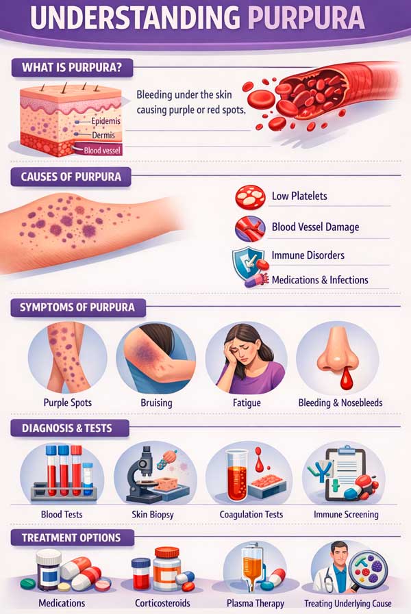 Purpura: Årsaker, typer, advarselstegn, diagnose og behandling